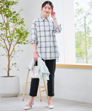 ダブルガーゼ バンドカラー チュニック