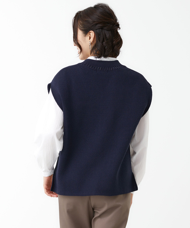 サイドスリット Vネック ニットベスト【手洗いOK】