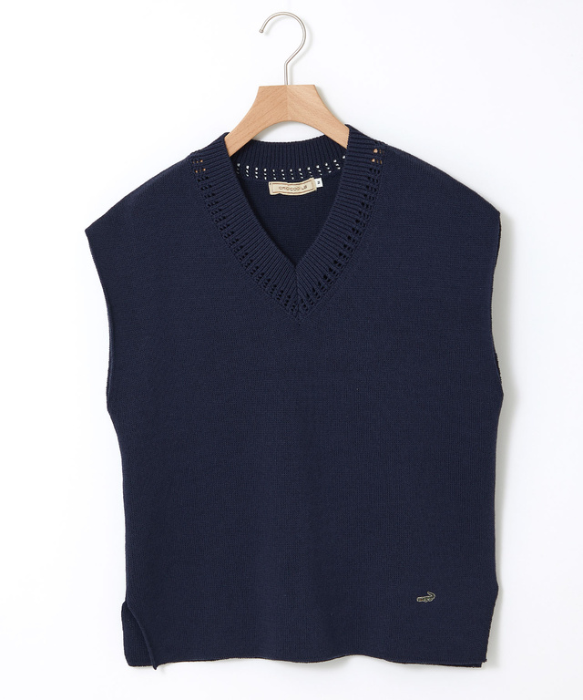 サイドスリットや襟ぐりに透かし編みのデザイン切り替えを施し、着こなしに抜け感を演出できる優秀アイテムです。