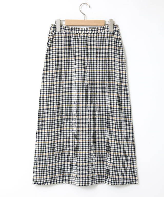 大柄が特徴のクロコダイルタータン生地を使用したウエストゴム入りのフレアスカート。皺になりにくく汚れも取れやすい素材感で、裏地付きなのでデイリー使いにも最適です。