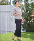 アイボリーのブラウスに合わせたくて、サックスを購入。