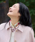 顔周りが華やかになるような配色の、上品なデザインのスカーフ。何か物足りない時の首元に、またはお持ちのバックに巻いていただくと普段の着こなしが格上げする便利なアイテムです。