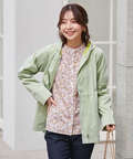 メモリーリバー素材を使用したフーデットアウター。春らしい綺麗な色展開で、フードは小さめな仕上がりでデザインポイントにしています。