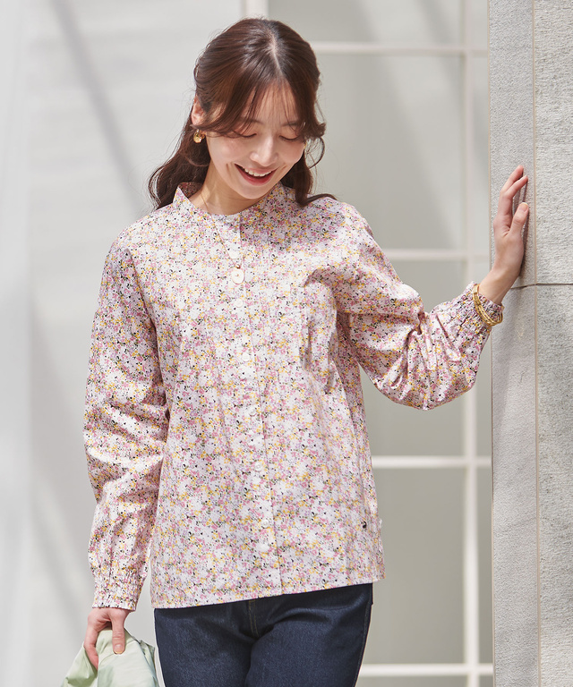 ピンクも気になっていたのですが、グリーンを購入しました。もともとスタンドカラーのブラウスが大好きで、そこに胸元のピンタックやら袖口のシャーリング、小花柄と好きなデザインが盛り沢山。お気に入りの一枚になりました。