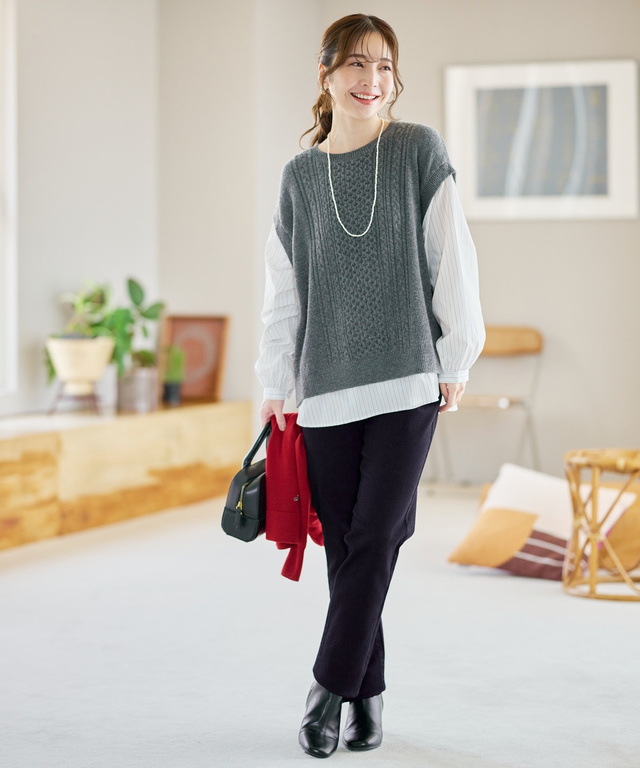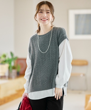 ウールブレンド ストライプ ドッキング ニット【手洗いOK】【オンラインショップ限定】 11,000円(税込) グレー 詳しく見る
