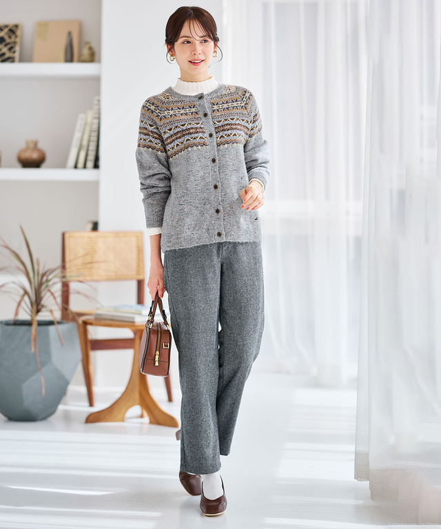 ウールブレンド フェアアイル柄 ニットカーディガン 【手洗いOK】 15,400円(税込) グレー 詳しく見る