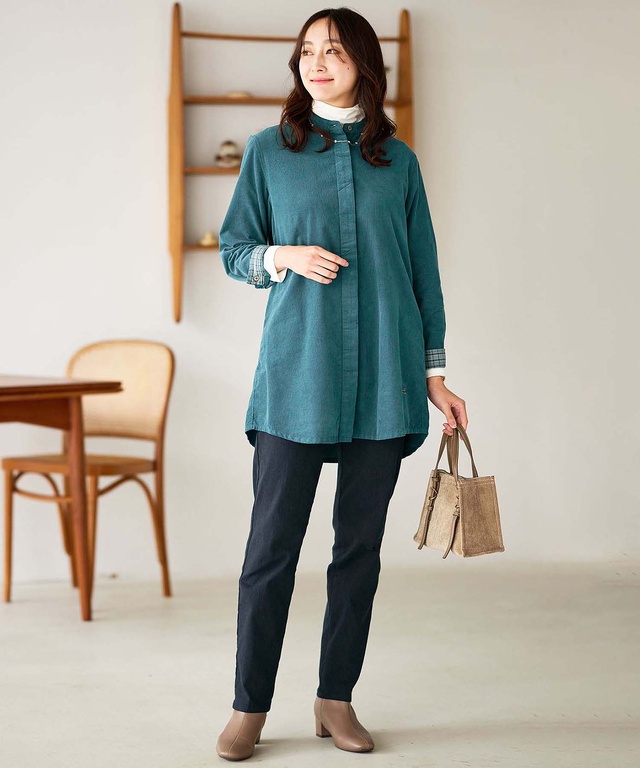 コーデュロイ バンドカラー チュニック 11,000円(税込) グリーン 詳しく見る