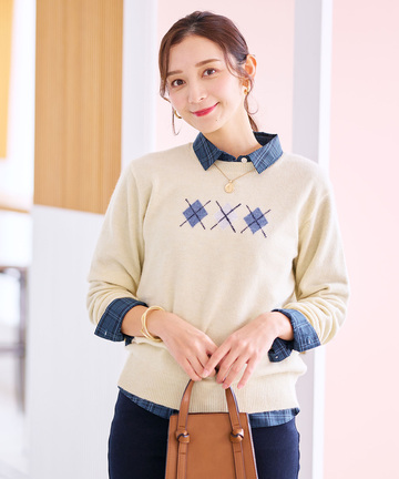 ウールブレンド アーガイル柄 ニット【手洗いOK】 11,000円(税込) アイボリー 詳しく見る