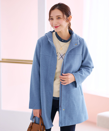 ウールライク フード付き コート 22,000円(税込) ブルー 詳しく見る