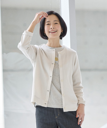 ワッフル生地 切り替え カーディガン 9,900円(税込) ライトグレー 詳しく見る