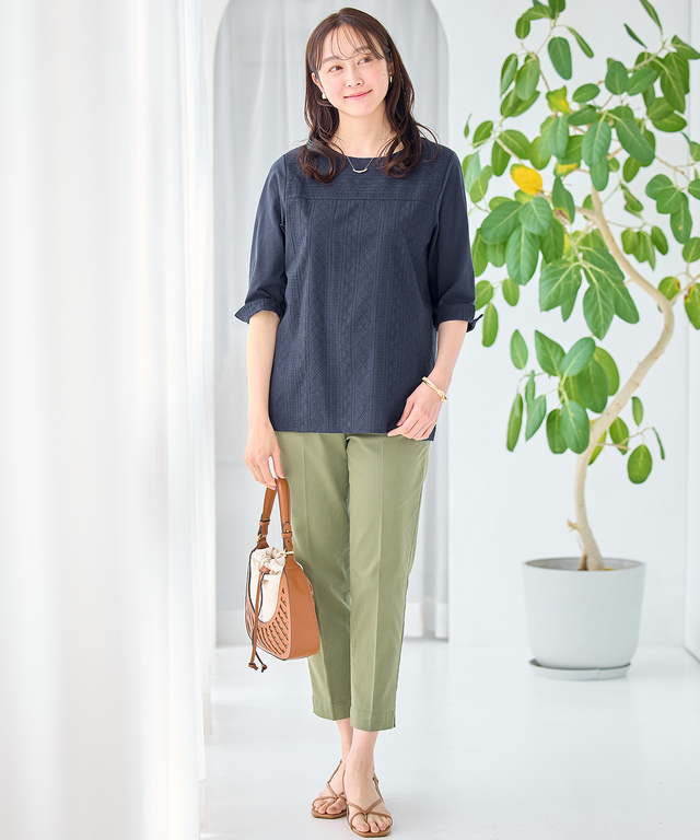 刺繍切り替え 七分袖 カットソー 7,700円(税込) ネイビー 詳しく見る